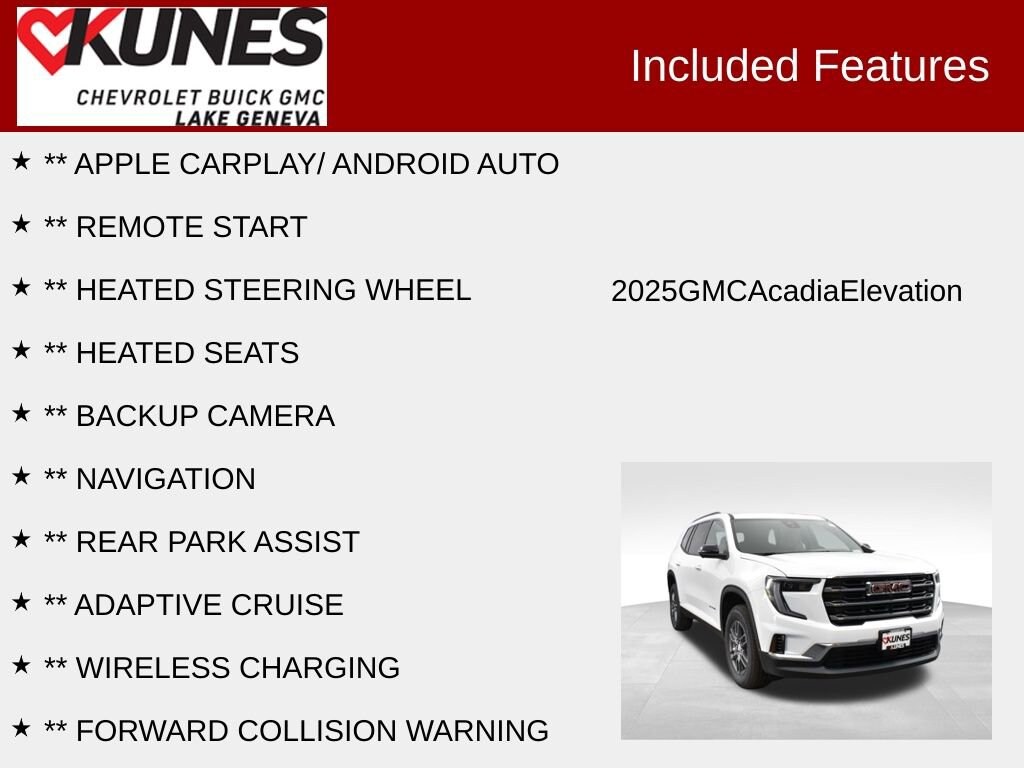 2025 GMC Acadia Elevation 2.5L DOHC 8-Speed Automatic FWD 20/27 City/Highway MPG