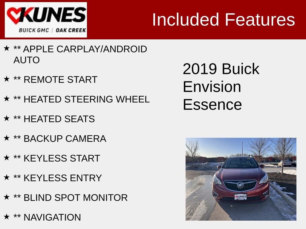 My husband spent months researching various mid-sized suv/wagon vehicles to replace my 2006 Jetta TDI. I wanted something larger to accommodate my 120 pound dog but still frugal, comfortable and good in the winter. On a whim, we went to a local Buick dealer and after looking at several offerings, I decided to test drive a 2019 Envision. In less than 5 minutes I was sold! I purchased a new Envision with AWD, 2.5l engine and leather interior. I have now driven over 4,000 miles without a single hiccup or regret! The ride is firm and responsive, the dynamics and road manners are without reproach, and the economy averages 25+MPG combined on regular gas! I couldn't be more pleased!… - 5.0