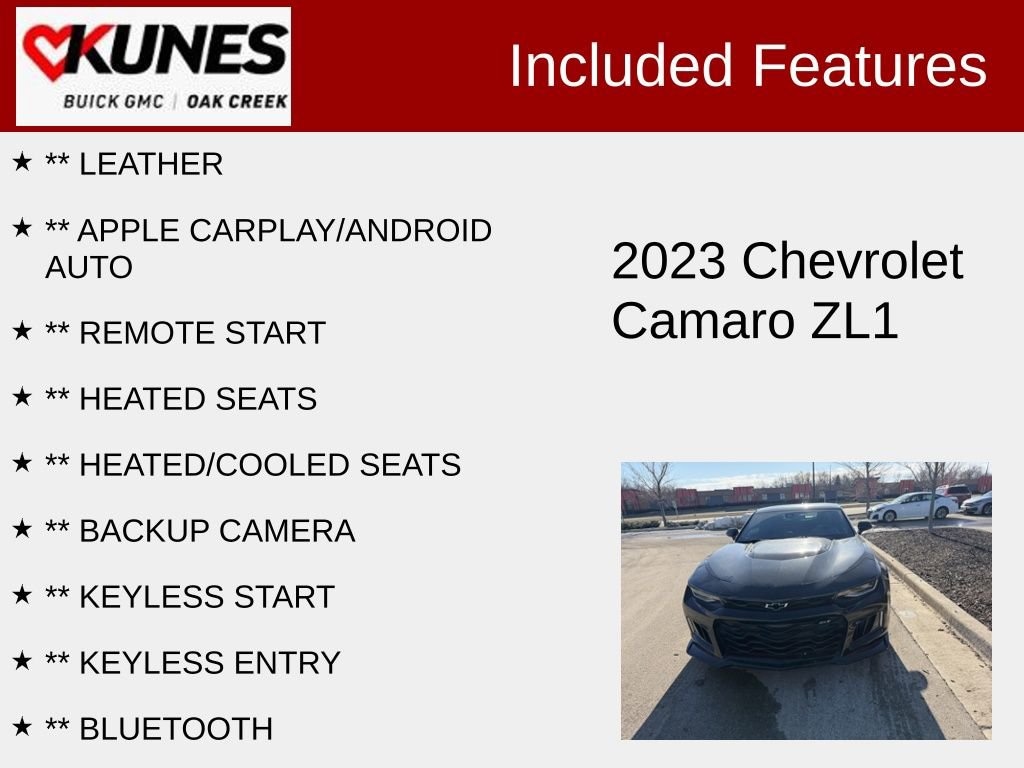 2023 Chevrolet Camaro ZL1 6.2L V8 Supercharged 10-Speed Automatic RWD Clean CARFAX.