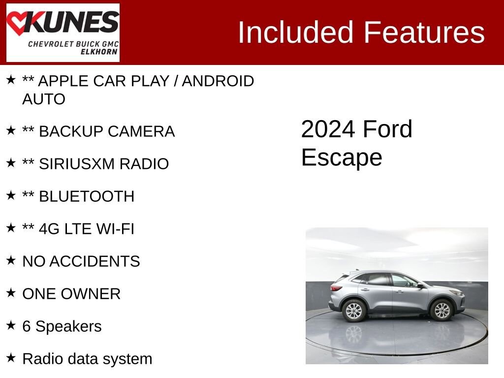 2024 Ford Escape Active 1.5L EcoBoost 8-Speed Automatic FWD Clean CARFAX. CARFAX One-Owner. 27/34 City/Highway MPG