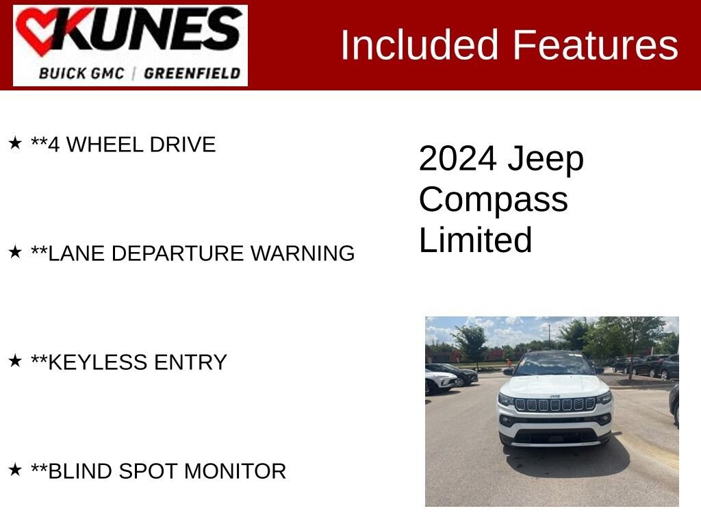 Bright White Clearcoat 2024 Jeep Compass Limited 4D Sport Utility 4WD 8-Speed Automatic 2.0L I4 DOHC