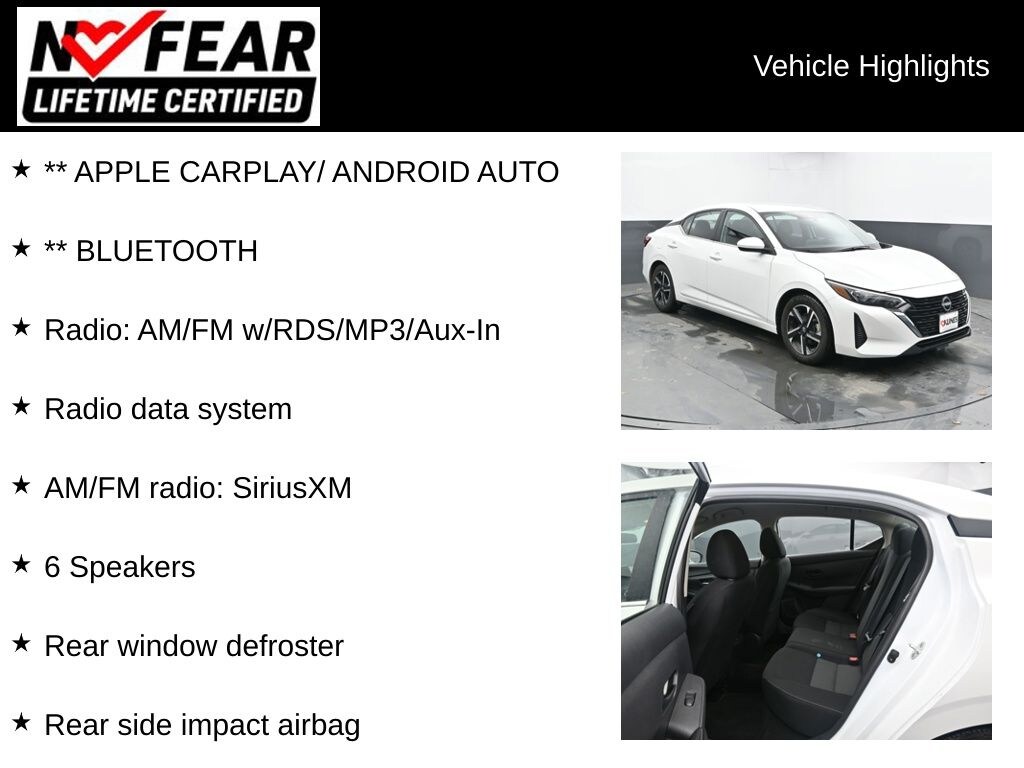 2024 Nissan Sentra SV 2.0L I4 DOHC CVT with Xtronic FWD CARFAX One-Owner. 30/40 City/Highway MPG