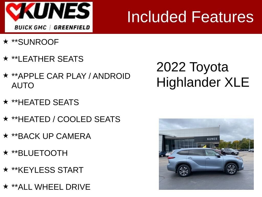 Moon Dust 2022 Toyota Highlander XLE 4D Sport Utility AWD 8-Speed Automatic 3.5L V6 DOHC